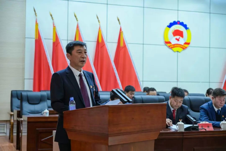 张广清主持开幕大会。弓建刚代表政协第十一届磴口县委员会常务委员会向大会报告工作。