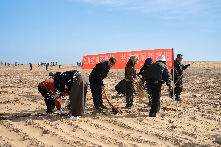 3月23日,磴口县2026年全民义务植树大会战启动。县四大班子领导带领全县1000余名党员、干部、青年志愿者等,深入乌兰布和沙漠生态治理区,开展春季义务植树、守护生态治理活动,掀起人人动手、全民尽责参与国土绿化新高潮。