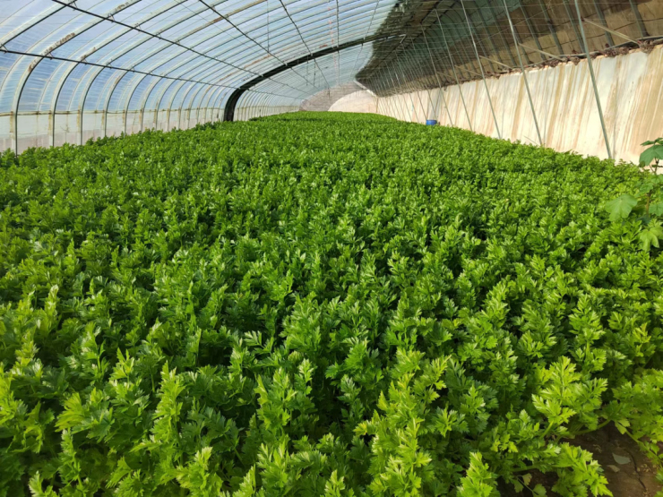走进协成村育苗基地,新建的新型棉帘拱棚,温度、整体稳压性设计等各项指标较传统大棚均有提升,能够满足种植户不同季节生产要求。2024年,计划投资450万元新建新型棉帘拱棚98亩,基地年育苗量预计可达1945万株,可种植作物约38500亩,实现产值约2.7亿元。