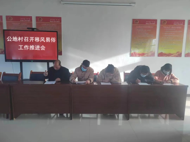 (四)小承诺汇聚大力量。 “要厚养薄葬,丧事简办……”、“要崇尚节俭,婚事新办……”、“要破旧立新,倡树新风……”、“要爱护公物,保护环境……”、“遵德守礼,文明行事……”“我将自觉带头,率先垂范,为营造清纯简朴的社会风气做出应有的贡献!”在公地村村民代表会议现场,党支部书记李万红传达了移风易俗相关文件精神,并宣读了移风易俗倡议书,积极响应上级有关移风易俗的号召,积极践行社会主义核心价值观,以实际行动推进移风易俗,弘扬时代新风,自觉做文明隆盛合的倡导者、传播者和践行者。要求两委成员、党员要以身作则,从自己做起,自觉抵制陈规陋习,厉行节约,杜绝铺张浪费,充分发挥党员和教师的带头作用,引领文明新风。村两委成员、党员代表、村民代表要带头积极参与以倡导喜事新办、丧事简办、神事不办、孝老爱亲、勤劳致富等为着力点,逐步形成新风尚,革除歪风陋习,持续深化“汇聚文明力量、移风易俗携手阻击疫情”行动,自觉做狮城新风的倡导者、传播者和践行者。 2023年,公地村村两委成员、党员、部分村民分别签订了移风易俗承诺书30余份。