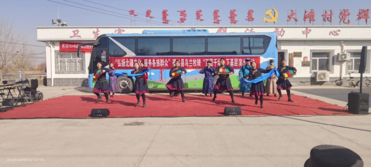 磴口县乌兰牧骑20余名演员在各村表演了舞蹈、歌曲、器乐演奏等精彩节目,歌声振奋人心,舞蹈引人入胜,乐曲让人身临其境,从歌唱祖国到抒发亲情乡情,从祈盼国泰民安到追逐个人梦想,无不传递出浓浓喜悦和建设北疆亮丽风景线的豪迈激情,深受广大群众欢迎。