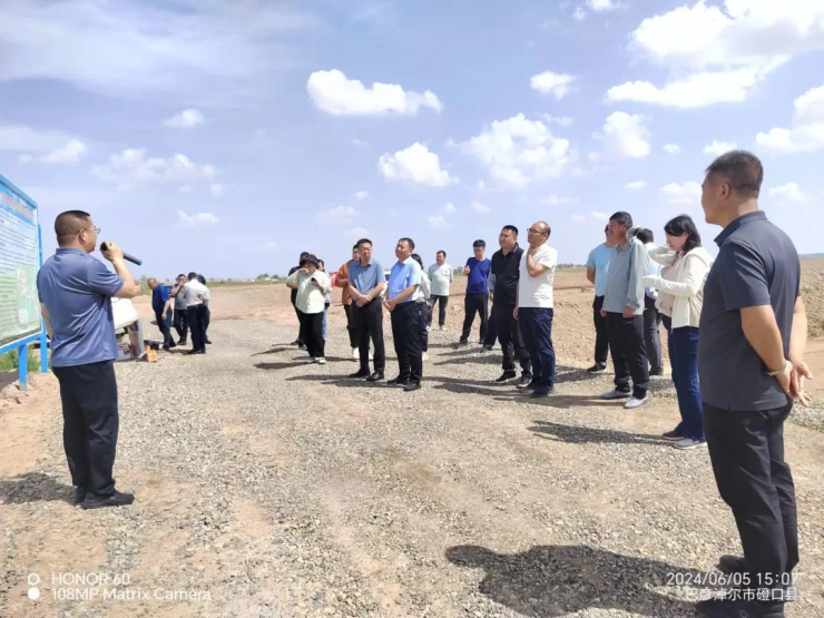 6月5日,乌海市海南区人民政府副区长王永生一行实地调研隆盛合镇投建运一体化高标准农田建设项目推进情况。政府副县长韩瑞、镇党委书记柳培富等人陪同。