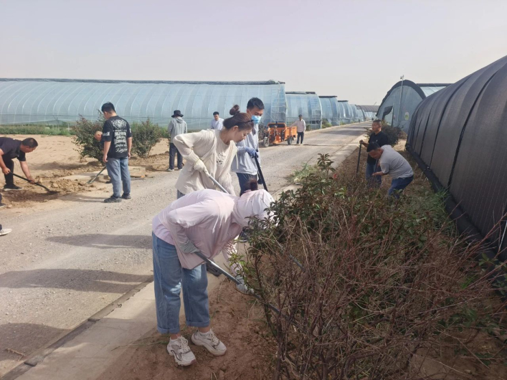 青年团员们来到补隆淖镇坝楞村现代农业产业园区,大家拿着铁锹、锄头、铲子等工具在温室大棚两侧除草、清理垃圾,重点整治卫生死角,做到发现一处,清理一处。活动中,大家相互配合,分工明确,齐心协力,充分发挥不怕累、不怕脏的志愿服务精神。团员们纷纷表示,像环境卫生整治这样的志愿服务活动,既能美化环境,又通过自身行动营造了保护环境的良好风气。图片