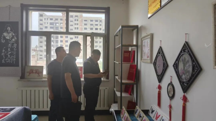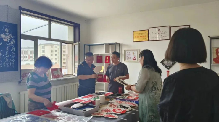6月20日,巴彦淖尔市文联二级调研员尚建新一行深入和平社区,调研非物质文化遗产剪纸技艺,磴口县委宣传部副部长李栋陪同调研。