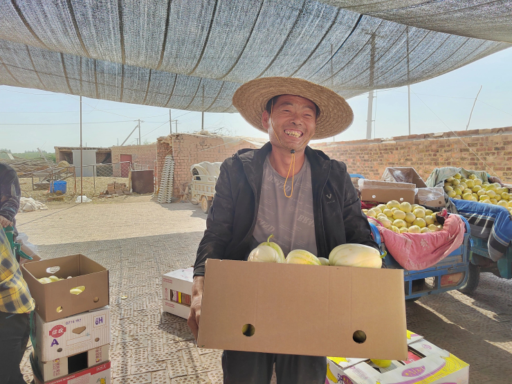 “民兴村现有大棚2800栋左右,其中有220栋种植四膜香瓜。四膜香瓜生长周期短、效益高,在四膜技术的加持下,白莲脆香瓜在5月初抢‘鲜’上市,收购价格达到12元每斤,一个棚收入可达到2万元左右。这茬香瓜收获后,部分农民还要再种一茬辣椒、西红柿和糖玉米,产值总计达到每亩2.5万元。”民兴村书记李根宏说道。