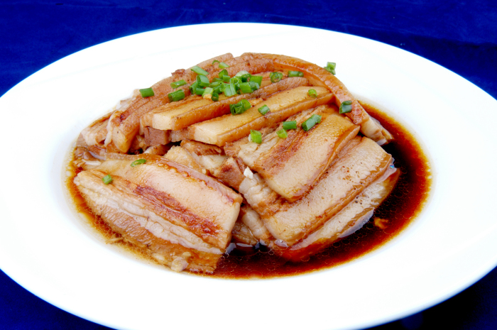 红烧扒肉条:将带皮五花肉放入清水锅内煮至八成熟时捞出,猪皮朝下放入九成热的油中,炸至红黄色捞出,再次晾凉。把烧好的猪肉切成1厘米厚、10厘米长的肉条,皮朝下码在碗内,放入调料,再将肉条扣入汤盘内,原汤加味精、湿淀粉勾芡,浇在肉条上即成。此菜色泽红亮,肉质软烂,油尽绵香,肥而不腻。