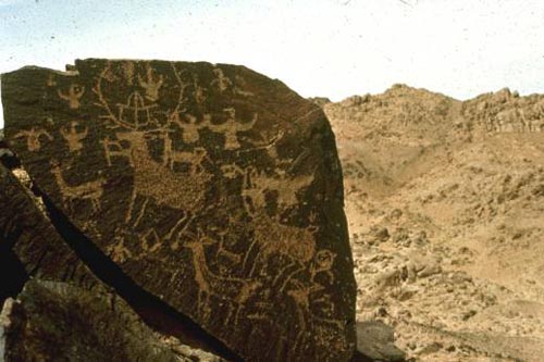 位于磴口县阴山格尔敖包沟和默里赫图沟的近万幅岩画组成了绵延千里的艺术画廊,镌刻着我们祖先留下的宝贵文化珍品。早在公元六世纪初,阴山岩画就被北魏地理学家郦道元所发现,并记录在著名的《水经注》中。根据专家们考证,阴山岩画始于青铜器时代,大量出现则在秦汉时期,一直延续到清代。岩画多凿刻或磨刻峭壁、沟壑岸边的巨石之上或在突兀而起的黝黑色石丛之中。岩画的形成大多是采用坚硬的石料或金属器具在岩石上打击成麻点,再将麻点连接成线,组成栩栩如生的画面。阴山岩画题材十分丰富,它从各个方面,真实地记录了古代阴山居民的社会经济生活和思想意识。从岩画的内容看,动物岩画所占比例很大,有山羊、绵羊、羚羊、鹿马、牛、猪、狗、虎、豹等20多种动物图,此外还有狩猎、舞蹈、车辆、骑士、穹庐毡帐、文字等游牧民族的社会生活概况。阴山岩画作为古代北方摹、山地文化的一颗灿烂明珠,具有重要的科学、历史价值。这些浩如烟海的艺术作品既是中华民族宝贵的文化遗产,也是世界岩画艺术丛中一块瑰宝。
