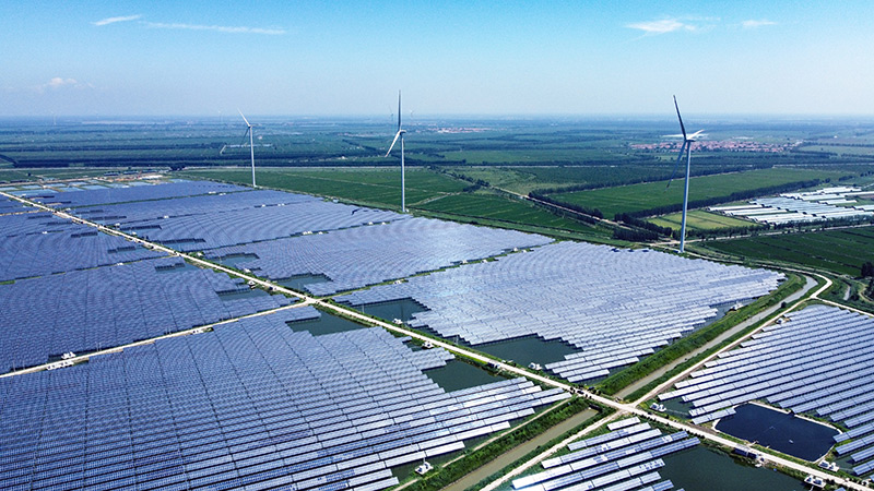 这是在天津市宁河区宁河镇大月河村拍摄的110千伏大月河光伏电站(2022年7月18日摄,无人机照片)。新华社记者 孙凡越 摄
