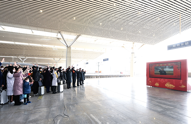 郑州东站是我国最大的高铁站之一,今年春运期间预计旅客发送量337万人。习近平通过视频连线看望慰问铁路客运干部职工。在东站一站台,郑州东站站长汇报车站春运总体情况。习近平又详细询问车站现在每天的客流量是多少?防疫措施落实的怎么样?春运治安采取了哪些措施?嘱咐他们精心组织调度,严守安全底线,确保广大旅客安全出行。月台上的旅客看见总书记,争相赶到镜头前,向总书记问好。习近平亲切询问他们是回家过年还是外出旅游,叮嘱他们注意旅途安全。习近平指出,春运是关系人民群众切身利益、关系经济发展和社会稳定的一件大事。今年春运是疫情防控进入新阶段后的第一个春运,客流量大幅回升。交通运输部门要坚决贯彻落实党中央要求,提升保通保畅能力,确保人民群众平安健康出行,确保重点物资运输畅通有序。要坚持底线思维,加强对极端恶劣天气的监测和预警,深入开展安全隐患排查治理,坚决遏制重特大安全事故发生。要加强对出行相对集中的务工流、学生流的服务引导,确保他们节前安全返乡、节后顺利返岗返校。要严格落实各项防控规定,最大限度降低交叉感染概率,保障旅客身体健康。习近平强调,长期以来,交通运输系统的干部职工埋头苦干,担当奉献,功不可没。春节期间,许多同志要坚守岗位。习近平代表党中央,向交通运输系统的广大干部职工致以新春的祝福,并祝广大旅客旅途顺利。