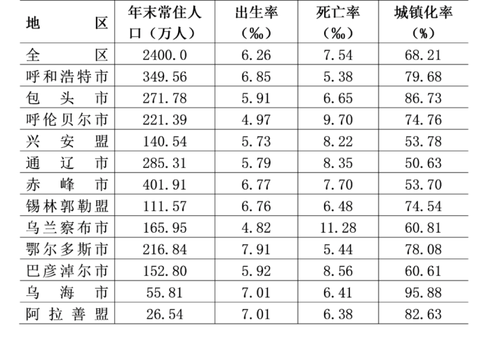 2021年末全区常住人口中,城镇常住人口为1637.04万人,比2020年末增加15.50万人;乡村常住人口为762.96万人,比2020年末减少18.33万人。常住人口城镇化率为68.21%,比2020年提高了0.73个百分点。
