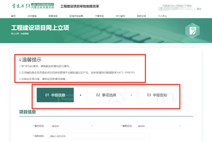 1、企业登录后,点击【项目立项】进行发改事项在线申报
