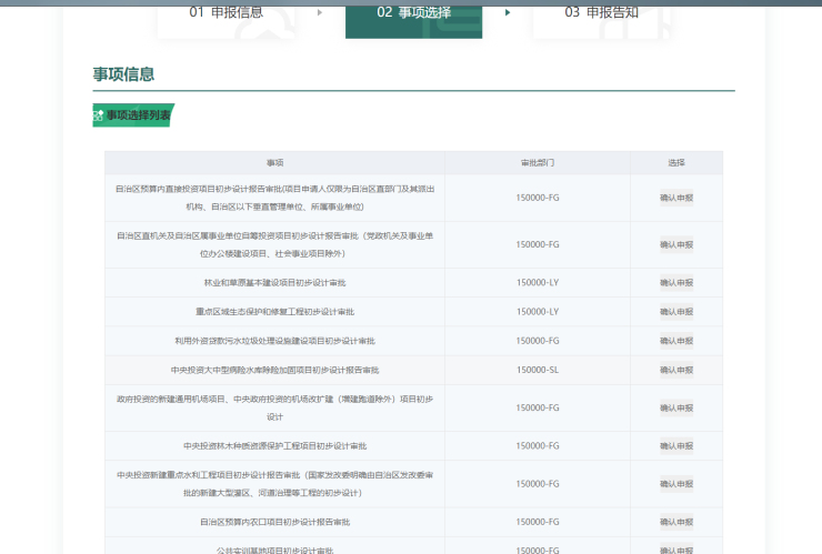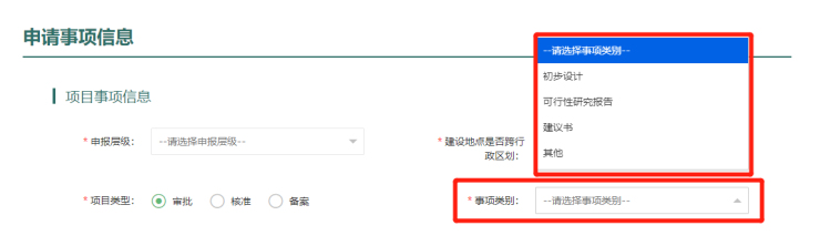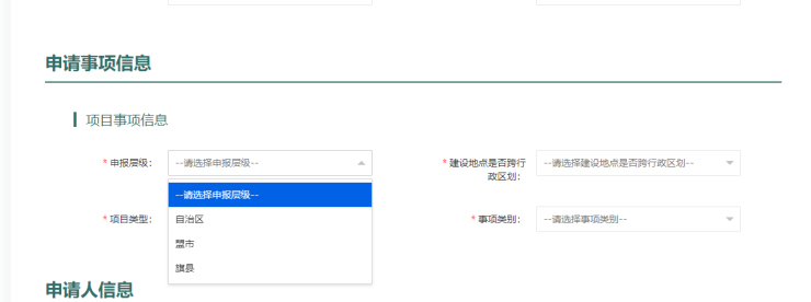 申请事项信息中申报层级、项目类型、事项类别需注意选择正确,填写完成后点击下一步。