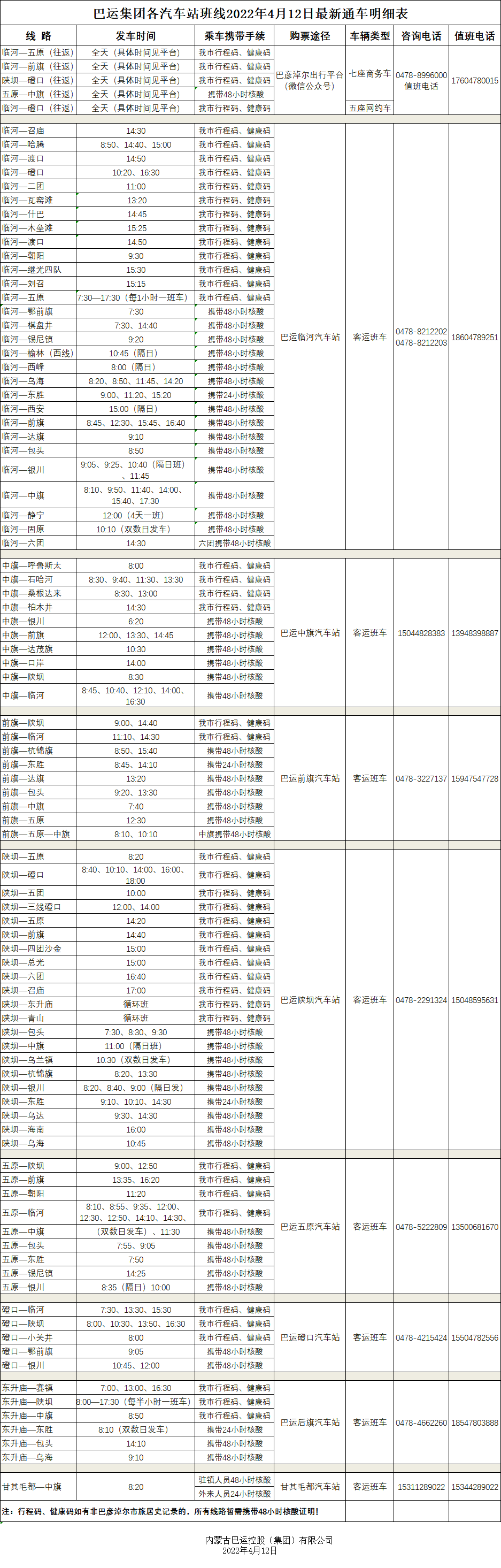 【公共交通】今日起,巴彦淖尔汽车站恢复这些路线!