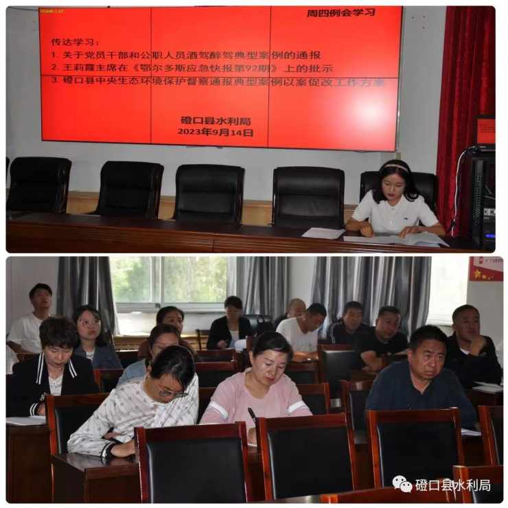 为进一步深入贯彻落实习近平总书记关于作风建设的系列重要论述,持之以恒学习中央八项规定精神,锲而不舍纠“四风”树新风,切实增强水利党员干部的纪律观念和法治意识,倡导安全文明驾驶,坚决杜绝酒驾醉驾违纪违法行为的发生。9月14日,磴口县水利局召开党员干部公职人员酒驾醉驾问题警示教育大会,会议传达学习了《关于党员干部和公职人员酒驾醉驾典型案例的通报》。