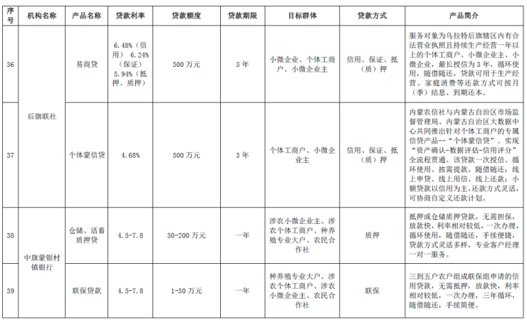 为深入贯彻落实党中央、国务院关于支持小微企业发展的决策部署,切实缓解小微企业融资难和银行放贷难问题,助力实体经济高质量发展,按照巴彦淖尔市诚信建设工程工作部署,巴彦淖尔市支持小微企业融资协调工作机制办公室积极引导银行业金融机构创新普惠金融产品、优化服务流程、降低融资成本,组织辖区各银行业金融机构开发了多种面向小微企业特色信贷产品,全面提升小微企业金融服务的覆盖率、可得性和满意度,为我市小微企业健康发展提供精准金融支持,现将辖区内银行业金融机构小微企业特色贷款产品公告如下。