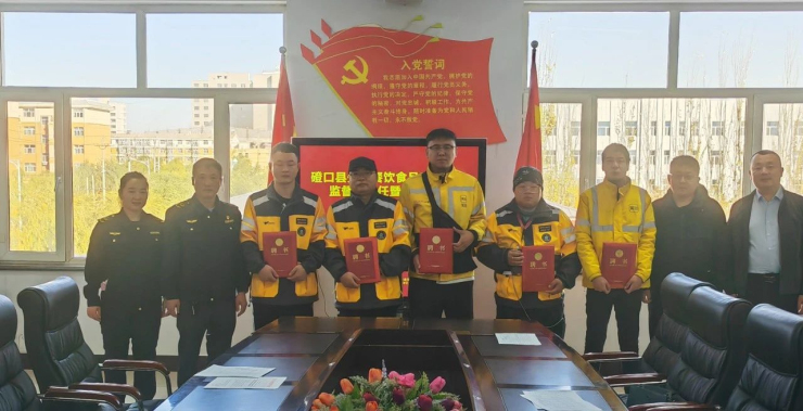 为进一步加强食品安全监管的力度和广度,实现食品监管人人有责任,安全成果人人有保障的齐抓共管模式,磴口县市场监管局理清工作思路、积极探索工作方法,于11月2日,在局会议室举行外卖骑手食品安全社会监督员聘任仪式,将5名外卖骑手正式聘任为食品安全监督员,并动员多元社会力量共同参与食品安全治理,守护“舌尖上的安全”。
