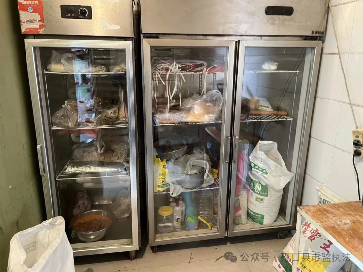 3、冰箱内成品与半成品混放;冰箱里使用再生塑料袋;