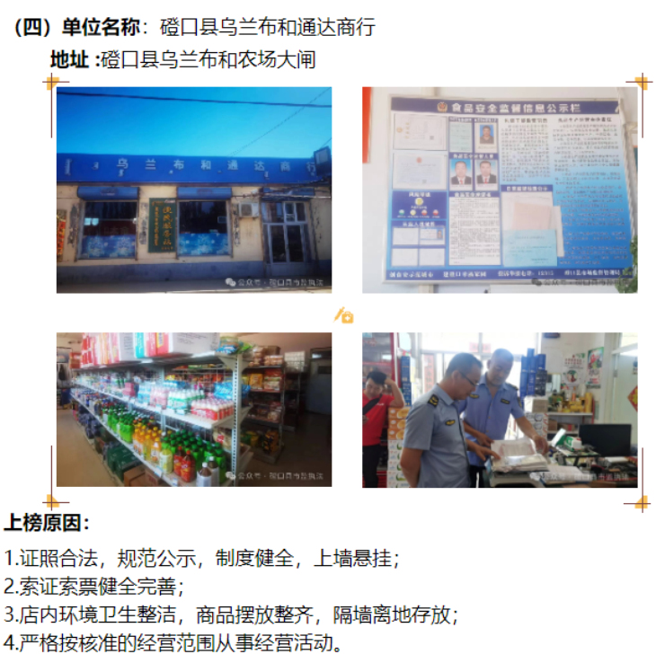 磴口县市场监督管理局发布食品安全“红黑榜”第十二期