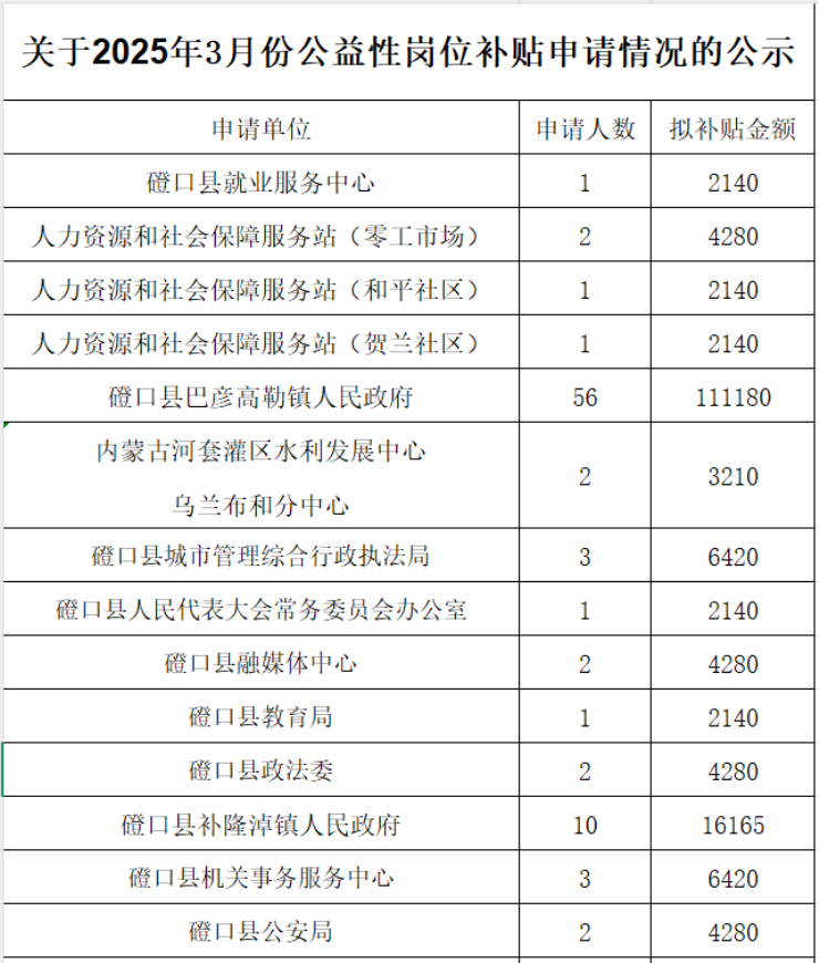 关于2025年3月份公益性岗位补贴申请情况的公示