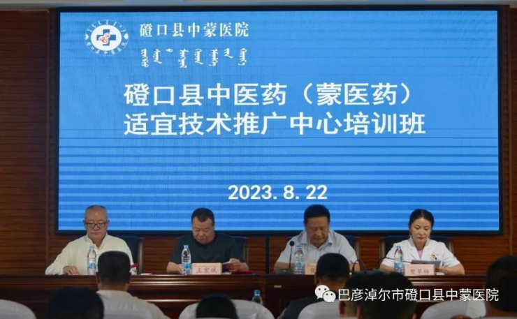 为增强全县中蒙医药服务能力建设,提高中蒙医临床诊断、预防保健和护理水平,普及推行中蒙医药适合技术,更好地为居民提供中蒙医药服务,充分发挥中蒙医药在深入医药卫生系统改革中的作用,8月22日,磴口县中医药(蒙医药)适宜技术推广中心揭牌仪式暨中医药(蒙医药) 适宜技术推广中心培训班在磴口县中蒙医院举行,县卫健委副主任张永胜、中蒙医股股长王宏斌、磴口县中蒙医院全体医务人员,各乡镇卫生院、社区卫生服务中心及各村卫生室相关人员参加本次开班仪式。