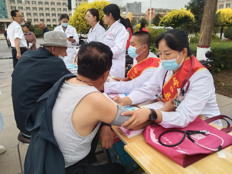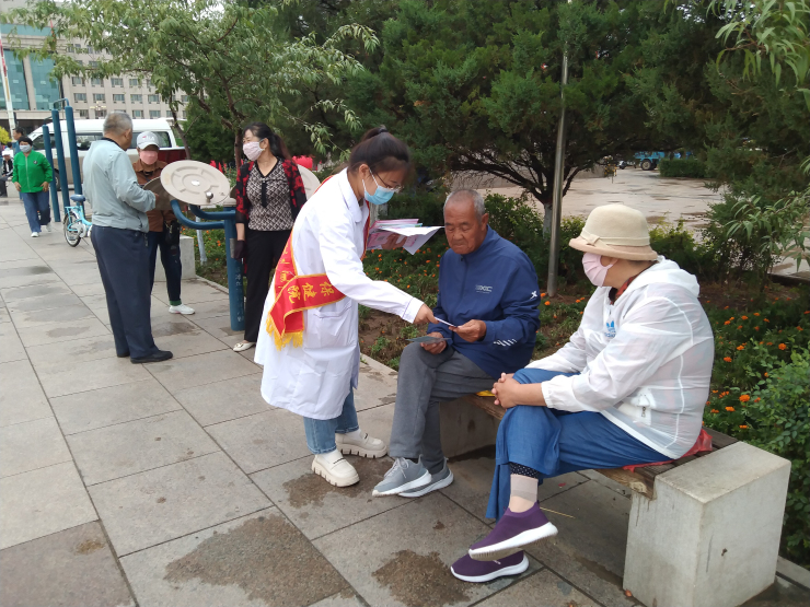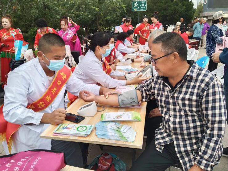 活动现场,通过悬挂主题横幅、发放健康宣传资料、义诊、设立咨询台等多种形式向过往群众免费测量血压、健康咨询。现场义诊、咨询的群众大多以老年人为主,医务人员耐心细致的询问老年人的病史,热情地为老年人们进行健康指导,并详细的给出相应的合理的诊疗建议。家庭健康管理中心的医务人员宣传普及婚前孕前检查、产前筛查诊断等保健知识以及科学检查、筛查的重要意义,提倡积极接受新生儿疾病筛查和访视、定期接受孕产保健和产前筛查,达到对残疾早发现、早干预、早报告、早治疗的目的,增强大众居民的防范意识,并强调合理膳食、远离二手烟、安全文明出行、保持良好心态,形成健康的生活方式。