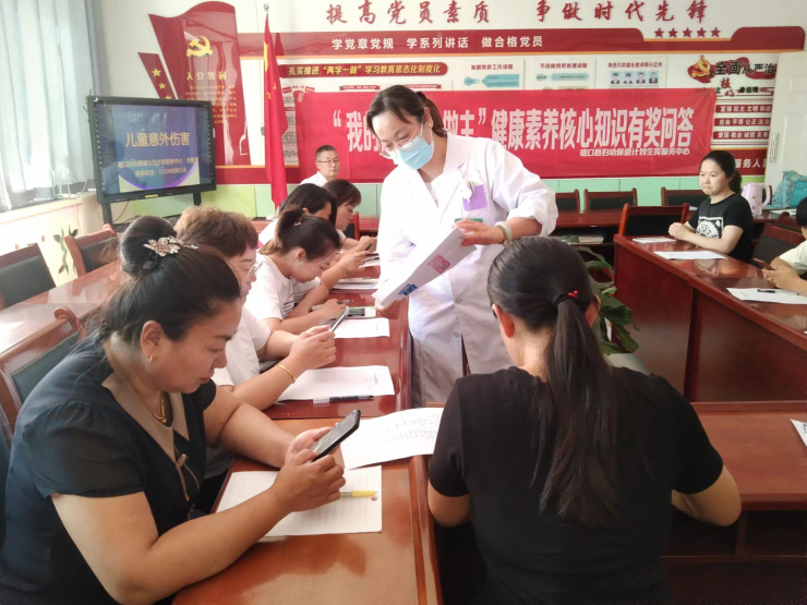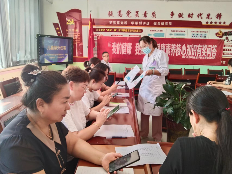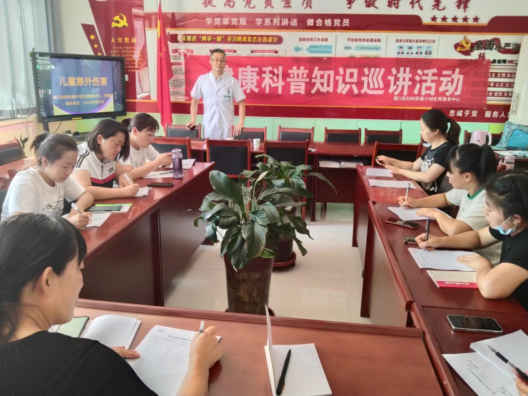 此次科普讲座由儿科主任、副主任医师李建雨主讲, 李主任就儿童校园会发生哪些意外?发生意外该怎么办?如何去预防和急救呢?李主任根据意外伤害的不同种类、意外伤害的严重程度、预防大于处理等几个章节为我们介绍了基本的自救技能。他表示,幼儿园的孩子年龄小,危险意识和自我保护能力较弱,幼师们如果能够掌握一定的急救常识和技能,一旦遇到突发疾病或意外伤害时,在医护人员未到达之前能正确处理,往往能够有更好的救治效果。讲座同时,现场教幼师们在气管异物窒息时如何使用“海姆立克急救法”,并嘱咐幼师们,孩子进食时不要让玩闹,说话,吃特殊食物(如汤圆、果冻等)要注意细嚼慢咽。李主任生动的讲解,让幼师们听得津津有味,不仅时刻认真听讲,还在勤做笔记。讲座共有30余位幼师参加,课后我的健康我做主健康素养核心知识有奖问答30余人参与,发放健康宣传资料200余份。