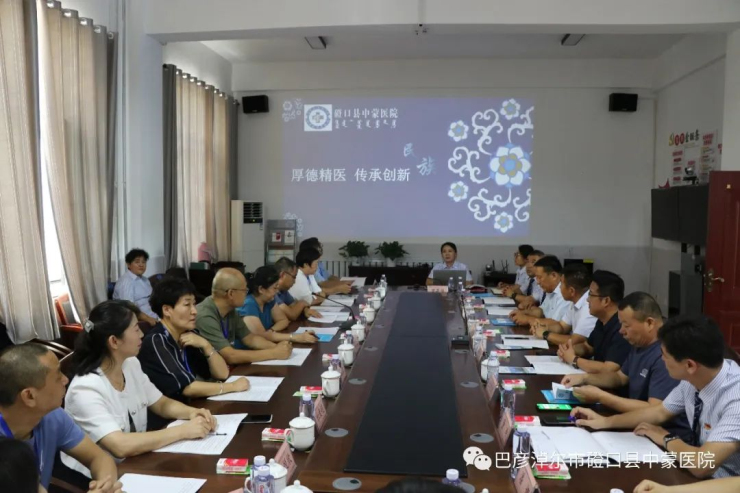 县委常委、统战部部长、政府党组成员孟乐、县卫健委负责人、疾控中心主任郝恒宇、副主任张永胜、中蒙医股股长王宏斌以及磴口县中蒙医院领导班子、相关科室负责人参加会议。会议由院长樊翠梅主持。