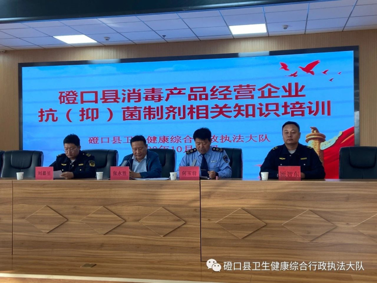 为进一步规范抗(抑)菌制剂经营单位行为,切实维护和保障人民群众健康安全,10月12日,磴口县卫生健康综合行政执法支队举办了消毒产品经营企业(抗)抑菌制剂相关知识培训班。全县药品销售连锁企业、各零售药店等单位负责人70余人参加了培训。
