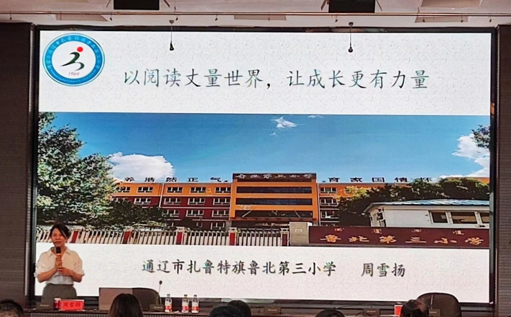 通辽市扎鲁特旗鲁北第三小学周雪扬校长作了题为《以阅读丈量世界,让成长更有力量》的讲座,分析了中小学生阅读的现状,分享了推广阅读、创建书香校园的做法和经验。