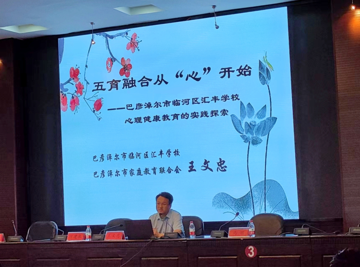 临河区汇丰学校校长王文忠作了题为《五育融合 从“心”开始》的讲座,他通过故事分享、案例分析、理论讲解的形式,从六个方面汇报了汇丰学校近几年在心理健康教育方面做出的有力探索和研究。