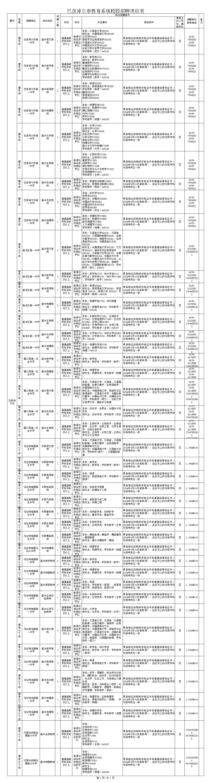 招聘岗位和具体要求详见《巴彦淖尔市教育系统校园招聘岗位表》(见附件1)。