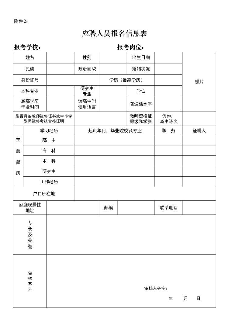 1.应聘人员提交《应聘人员报名信息表》一份(见附件,从网上下载打印填写或现场填写,须准备近期正面1寸免冠彩色照片1张)。