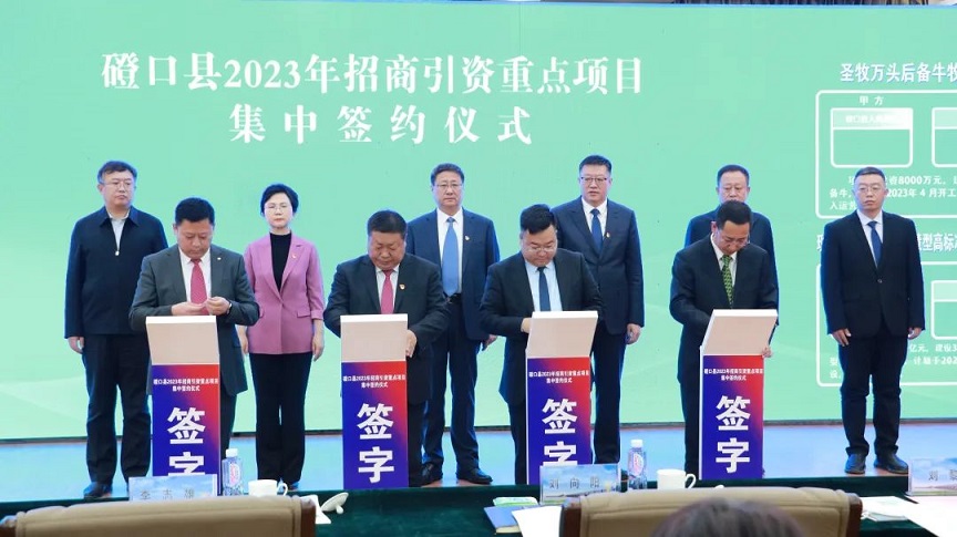 3月10日,磴口县2023年招商引资重点项目集中签约仪式在会议中心举行。